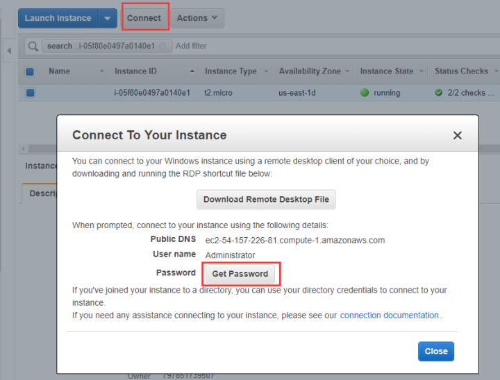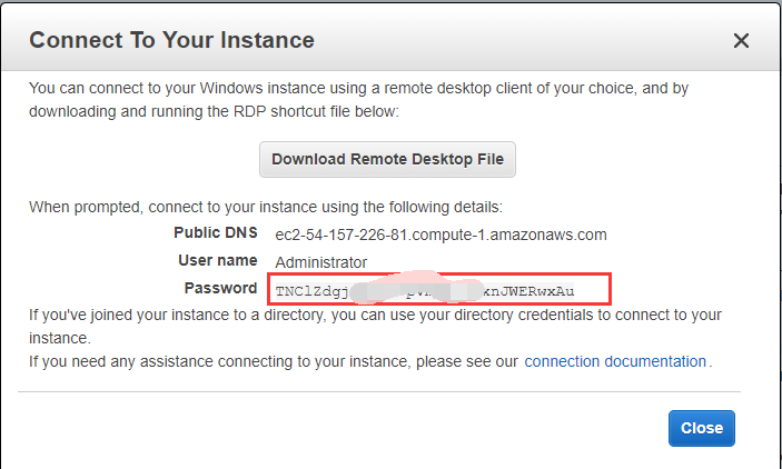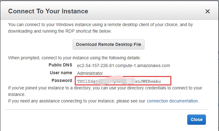 登录AWS控制台,找到需要登录的服务器,点击“连接”在弹出的窗口中点击【Get Password】