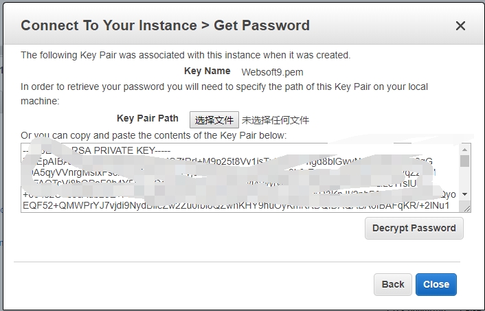 在远程连接 Windows 服务器之前需要上传秘钥对获取密码,然后在使用 Windows 远程桌面工具连接: