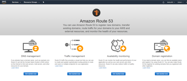 Route 53就是AWS的域名购买、解析与管理平台,通过使用 Amazon Route 53,您可以注册新域、转移现有域、将域流量路由到 AWS 和外部资源,还可以监控您的资源的运行状况。