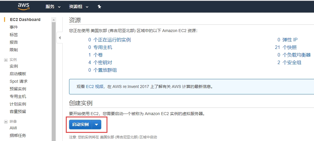 登录AWS云控制台,打开EC2 Dashboard