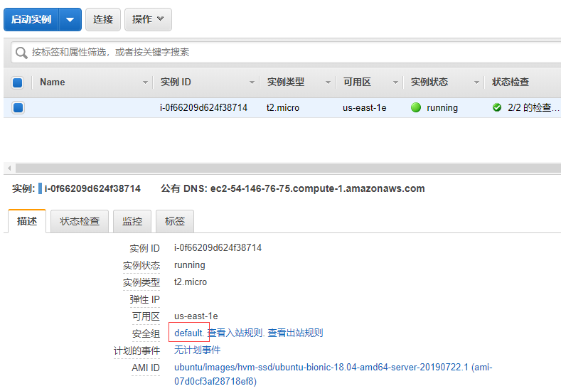 在AWS门户,打开实例->描述