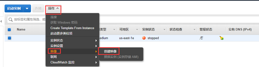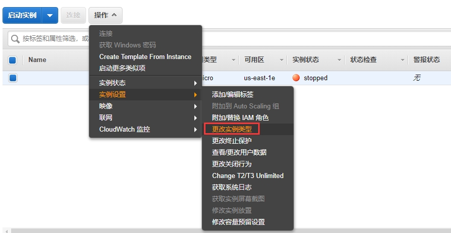 登录到AWS控制台,停止实例