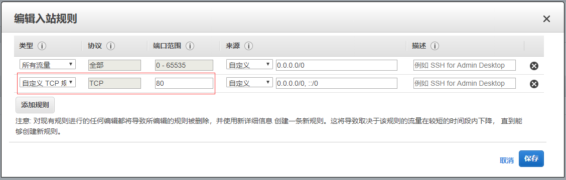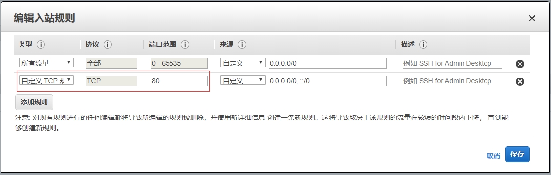 安全组是管理EC2端口的功能,端口是服务器上应用程序与外部访问出入访问的通道。下面以开启80端口为例,为您介绍安全组的使用